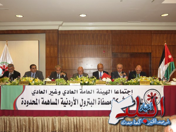 عقدت الهيئة العامة لشركة مصفاة البترول الاردنية المساهمة العامة اجتماعها العمومي الخميس 28/4/2016 في فندق انتركونتيننتال - عمان بحضور الرئيس التنفيذي للشركة "وليد عصفور" و 12 من اعضاء مجلس الادارة البالغ عددهم 13 عضوا.