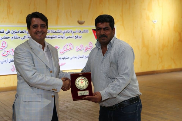 وفي ذات السياق، قال رئيس نادي الشعلة هاني عفانة البوريني في كلمته التي رحب فيها براعي الاحتفالية والحضور، بأن حظي عمال الأردن حظيوا وفي مختلف المجالات على كافة اشكال الدعم من صاحب الجلالة الهاشمية الملك عبدالله الثاني بن الحسين المعظم حرصا على تحقيق الحياة الكريمة لهم وايضا المحافظة على مكتسباتهم وبما يكفل تحقيق العدالة وتكافؤ الفرص في مختلف الميادين وتحسين ظروفهم المعيشية سواء كانت تأمينات صحية او امن مجتمعي حرصا من جلالته على العمال ليحظو بحياة كريمة تكفل لهم كرامة العيش فكرامة اي مواطن من كرامة جلالته اعزه الله وابقاه والحكومة ايضا سعت الى فتح اسواق جديدة امام الكفاءات الاردنية وايضا سهلت على المستثمرين ومنحت مزايا كثيرة في سبيل خلق فرص عمل للاردنيين في كافة الميادين وايضا الدولة الاردنية كفلت للنقابات العمالية كافة الاساليب المشروعة والوسائل للدفاع عن حقوق العمال والحفاظ على مكتسباتهم وتحقيق المزيد من المزايا والحقوق لهم وايضا امنهم الوظيفي من خلال الحرية المسؤولة للعمل النقابي .