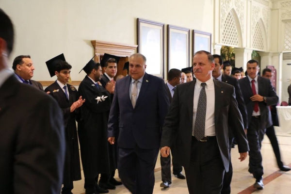 إن من دواعي سروري أن أرحبَ باسمكم جميعاً بصاحبِ السموِ الملكيِ الأميرِ فيصلِ بنِ الحسينِ المعظم الذي أصبح تشريفُهُ لنا ورعايتُهُ حفلَ تخريجِ طلابِنا عاماً إثرَ عامٍ وسامَ شرفٍ نتيهُ به ونعتز، ولعله من يُمْنِ الطالعِ أن يتزامنَ احتفالُنا هذا العامَ مع احتفالاتِ وطنِنا بمئويةِ الثورةِ العربيةِ الكبرى، تلكَ الثورةُ التي قادها أجدادُكُم الأشرافُ من بني هاشم، ضدَ الظلمِ والطغيانِ والتهميش، وما زالت شعلةُ الثورةِ وستبقى بإذنِ اللهِ متقدةً تعلنُ للجميعِ أن الهاماتِ ستظلُ مرفوعةً والجباهَ عاليةُ لا تنحني إلا للهِ، وهذا ما تعلمناهُ من قيادَتِنا الهاشميةِ المظفرةِ وعلى رأسها صاحبُ الجلالةِ الملكِ عبدِ اللهِ الثاني ابنِ الحسينِ المعظم.