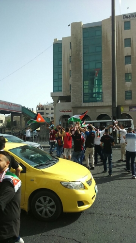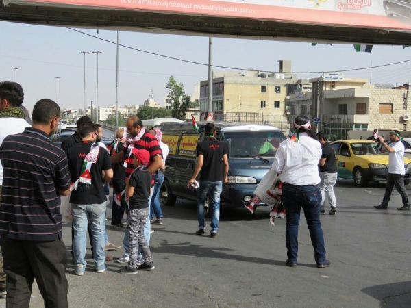 بالاضافه الاغاني الوطنيه المعبره لحب الوطن مما اشعل البهجه بين العامه والمارين في الطريق العام وجعلهم يتفاعلون
