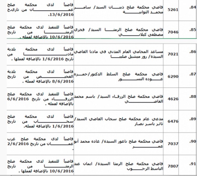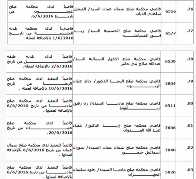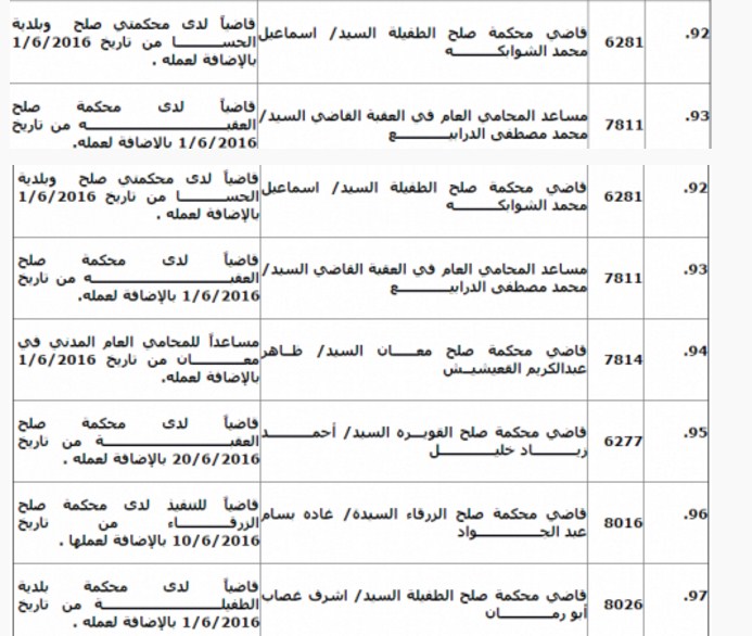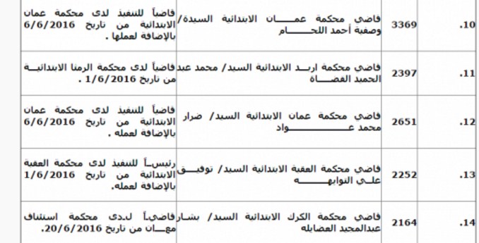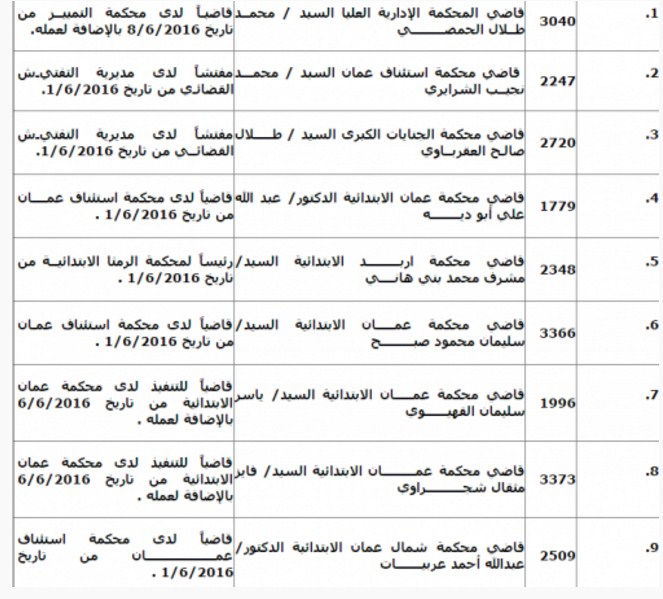 قرر المجلس القضائي تمديد انتداب 97 قاضيا من مختلف المحاكم لمدة ثلاثة اشهر وذلك استنادا لقانون استقلال القضاء رقم 29 لسنة 2014. وتاليا الاسماء: