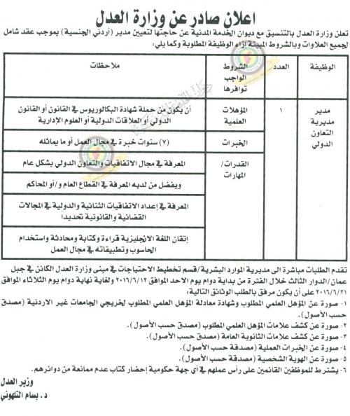 أعلنت وزارة العدل بالتنسيق مع ديوان الخدمة المدنية عن حاجتها
