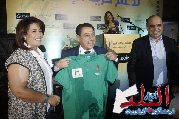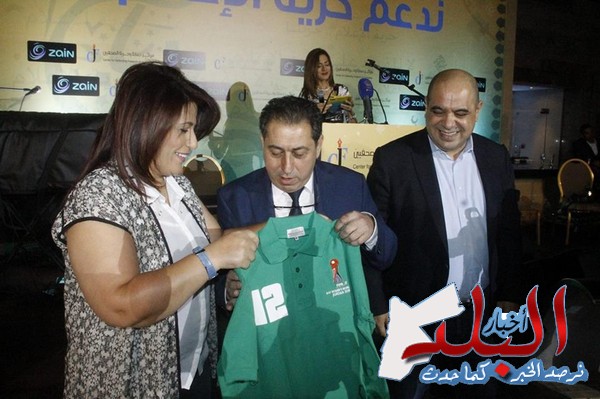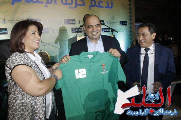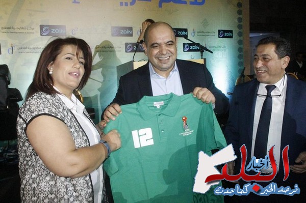 وكرمت الزميلة هبة الصباغ مديرة الاعلام لبطولة كأس العالم لكرة القدم للسيدات تحت سن ال 17 الزميل منصور والرئيس التنفيذي لشركة زين احمد هناندة بتشيرت حملة انت لاعب رقم (12).