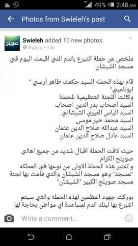 مسجد الشيشان القديم بصويلح شارك بها عدد كبير من المواطنين الذين تبرعو بالدم ، اسهمت بنجاح الحملة بشكل منقطع النظير.