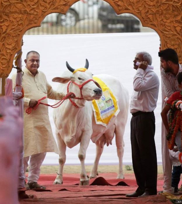 ويقدس الهندوس البقر. ويعد ذبح البقر أو بيع لحومها أمرا غير مشروع في ولاية هاريانا، ولكن ليس في كل الولايات.