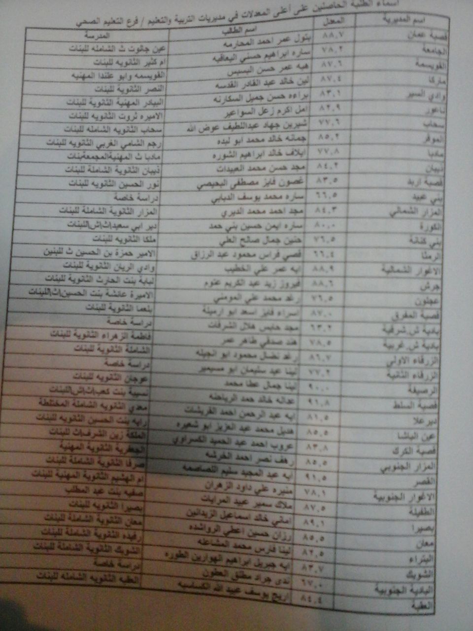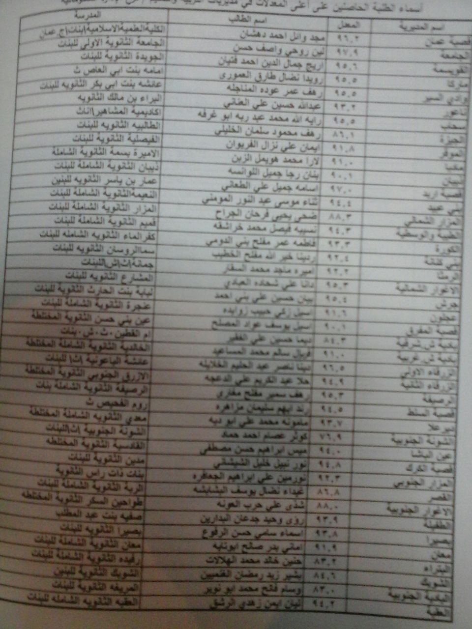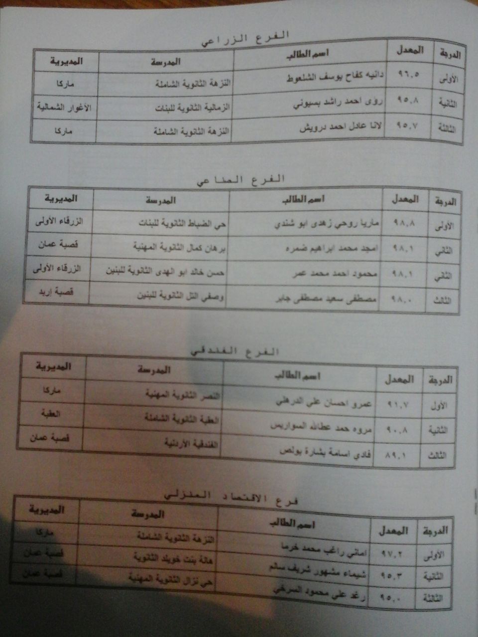 ووفق الذنيبات، بلغت نسبة النجاح العامة 40.1%، (العلمي 63.1% والأدبي 18.2% والشرعي 18.9% المعلوماتية 26.5 والتعليم الصحي 20.4).