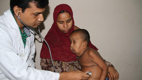 ويعاني الطفل، على ما قالت أمه، من ضعف في الكُلى والكبد وقد تمضي أيام بدون أن يتبول، ورغم أنه طاف عدداً من مستشفيات بنغلادش إلا أن الأطباء بدوا في حيرة أمام هذه الحالة النادرة.