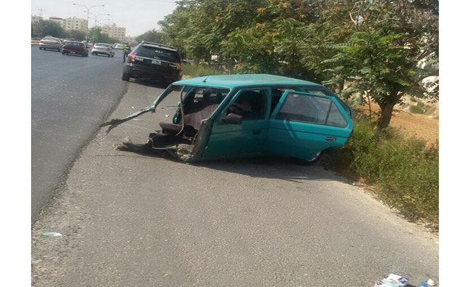 وقع حادث سير على شارع الاردن ، الجمعة ، أدى الى انقسام السيارة الى نصفين ، بسبب قوة الصدمة ، حيث لم يصب سائقها بأذى .