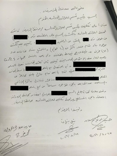 تقرير الكشف الحسي الصادر عن حارس املاك الدولة في شهر آب الحالي لم يعترف بمستغل الارض الجديد حينما ذكر في تقريره ” وحسب إدعاء بعض الأشخاص المجاورين تبين بأن تلك المخازن تعود للمدعو (..) وتم الإتصال معه حيث افاد بأنه قام بشراء المنبى كاملاً من المدعو (..) وذلك بتنازل بدائرة الأراضي والمساحة عن اتعابه بلجزء المؤجرة سابقاً”.
