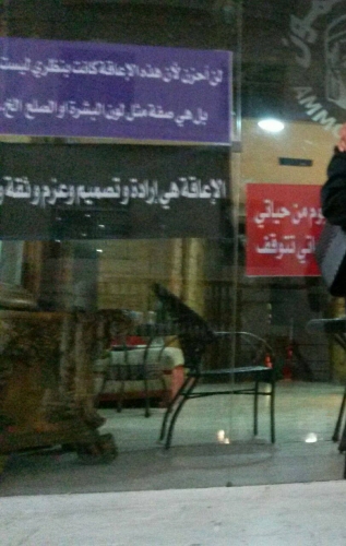 هنا يتساءل البعض لماذا تعثرت كلماتي؟ ولماذا أعجز عن الكتابة؟ ستشاطرونني فيما الم بي حين تعرفون أن المبدع والمؤلف مصاب بالشلل الدماغي منذ الولادة ويستخدم الكرسي المتحرك وقد كتب قصة حياته بانفه... نعم بانفه, اعلم انكم ستدركون صعوبة الامر، انها روح التحدي والإصرار والأمل.