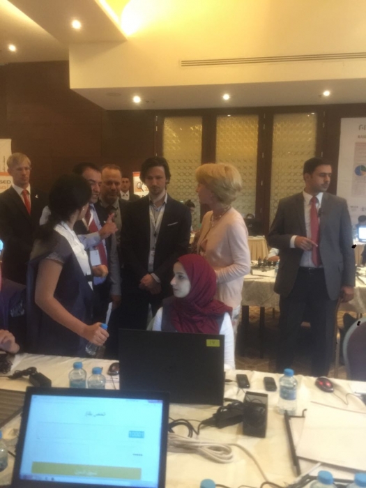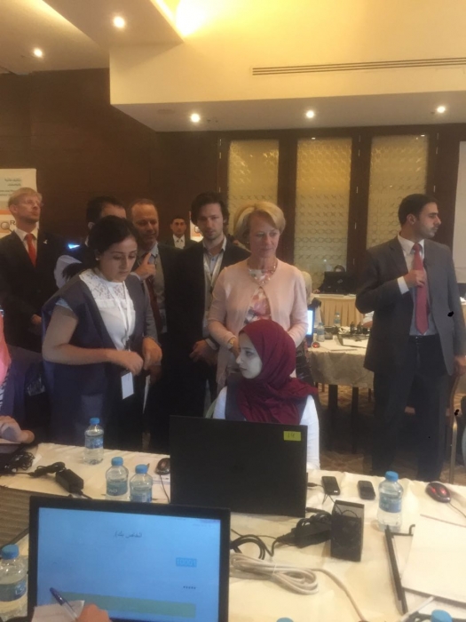 زارت السفيرة الامريكية اليس ويلز مقر راصد لمراقبة الانتخابات النيايبة وتجولت في المكان لاطلاع على سير عملهم في مراقبة الانتخابات
