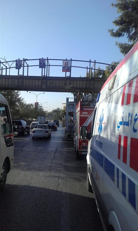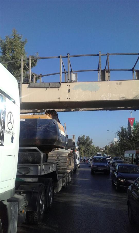 علقت آلية تحملها شاحنة، صباح الاربعاء بجسر للمشاة أمام حدائق الحسين، مما تسبب بإغلاق جزئي للشارع للقادمين من جهة صويلح.