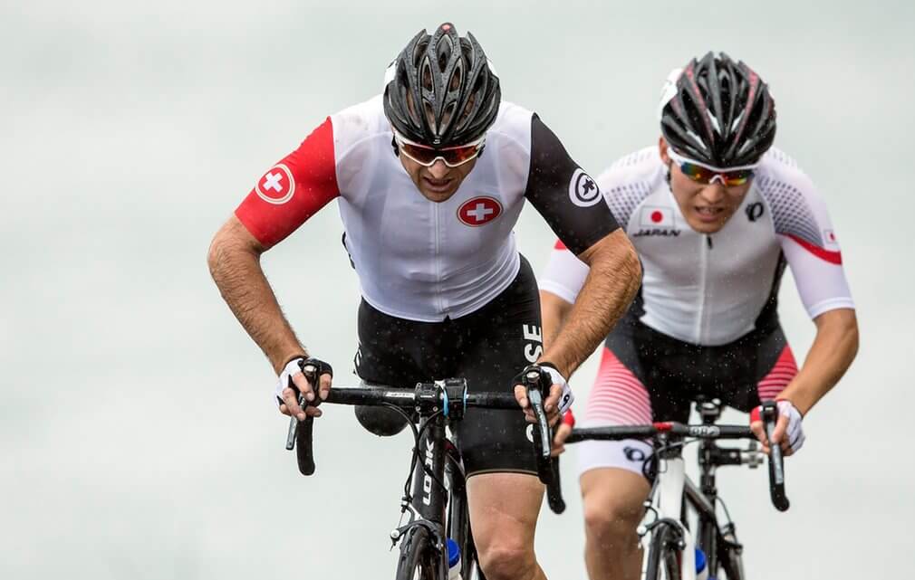 السويسري روجيه بوليجر والياباني شوتا كاواموتو في سباق الدراجة.