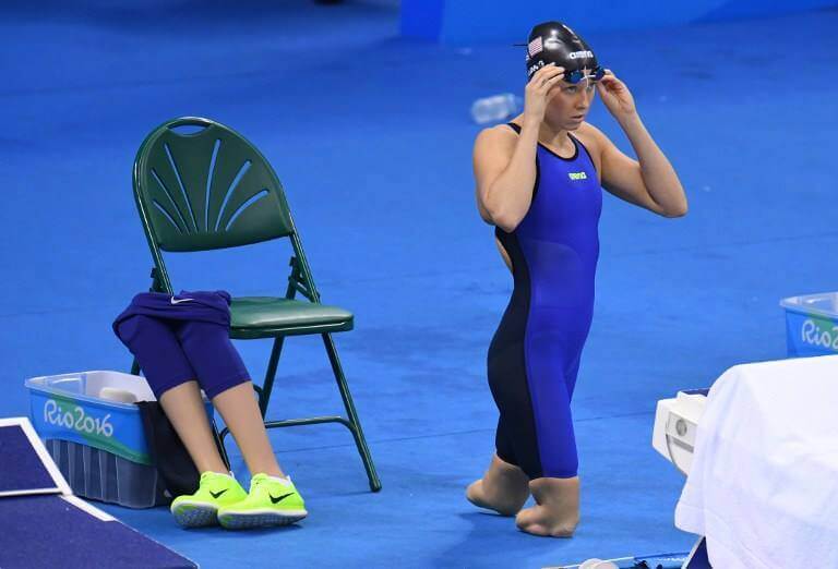 الأمريكية جيسيكا لونج تتحضر لسباحة 100 متر صدر.
