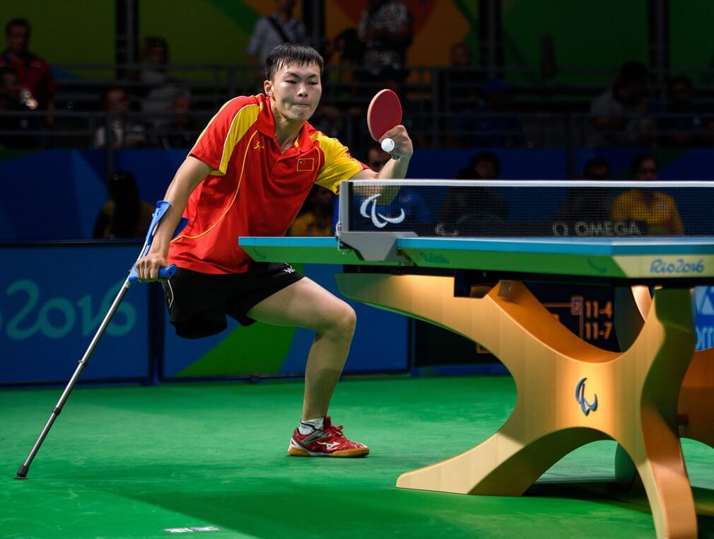 الصيني يو شان يلعب تنس الطاولة، وقد ربح الميدالية البرونزية.