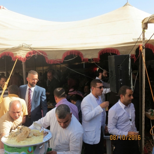وصدحت الاناشيد الوطنية والزغاريد التي انطلقت تعبيرا عن الفرح بهذه المناسبة الطيبة فجاء الحفل مهيبا منظما يراعي القيم والاخلاق وكرم الضيافة بحفل غذاء يليق بمكانة الضيف والمعزب..