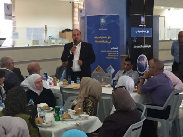 وقد تحدث الدكتور الحوراني بكلمة رحب فيها بالحضور وأشاد بجهودهم المثمرة وبحرصهم الدؤوب على خدمة جامعتهم وتطورها منوها الى ضرورة التمسك بنهج الجامعة المتميز في خدمة طلبتها وفي تأدية رسالتها التعليمية على اكمل وجه لتبقى دائما في الطليعة .