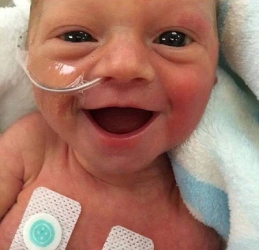 تداول نشطاء مواقع التواصل الاجتماعي صورة لطفلة ولدت قبل أوانها وهي تبتسم بطريقة طريفة جداً.