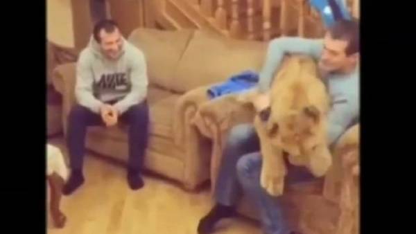 وظهر في الانترنت شريط فيديو وفيه يبدو الشبل البالغ من العمر سنة واحدة وهو في غاية الودية ويتصرف كحيوان اليف.