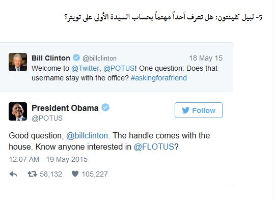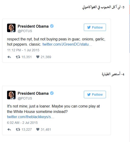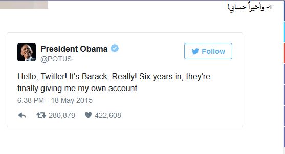 ومع اقتراب نهاية ولاية أوباما الرئاسية بعد فوز الجمهوري دونالد ترامب، نستعرض أبرز 5 تغريدات طريفة له على "تويتر":