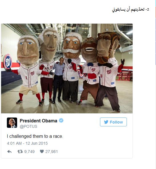 هذه الطرافة انعكست حتماً على حساب أوباما على "تويتر"، فنشر عبر الحساب المخصص للرئيس الأميركي عدّة تغريدات مضحكة، أحدثت جدلاً على الموقع.