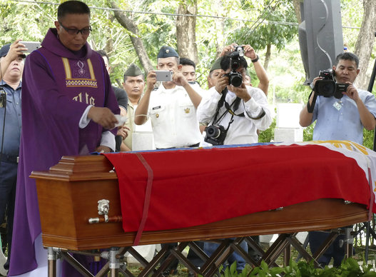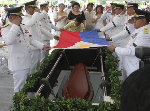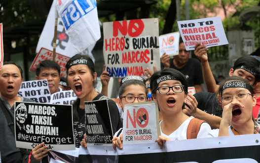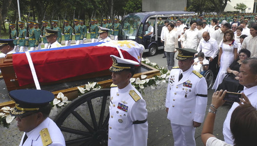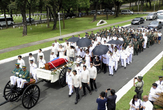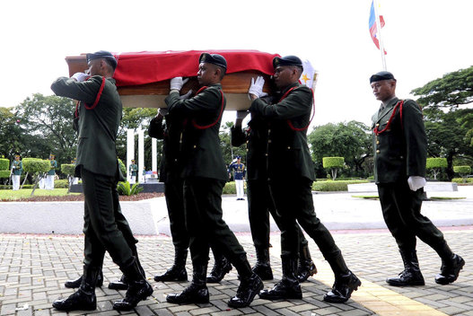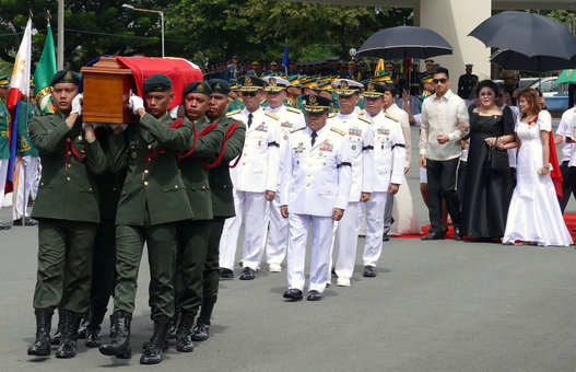 دفن جثمان الدكتاتور الفلبيني فرديناند ماركوس في مراسم عسكرية في مقبرة للأبطال في العاصمة مانيلا الجمعة 18 نوفمبر/ تشرين الثاني 2016، بعد 30 عاماً تقريباً على وفاته في هاواي وذلك وسط احتجاجات محدودة من جانب سياسيين وجماعات لحقوق الإنسان.