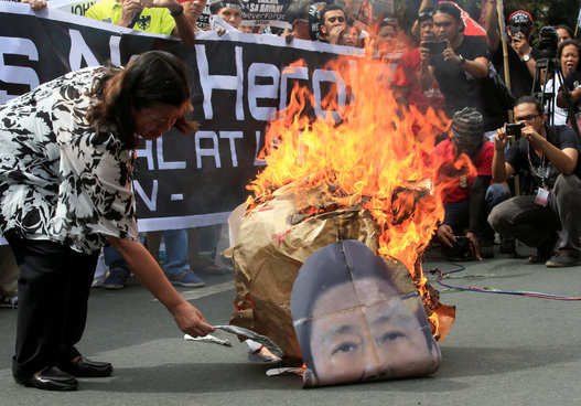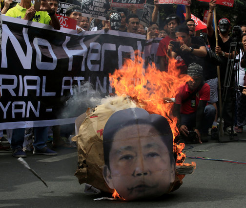 وتجمع عشرات المحتجين في أرجاء مانيلا وحرق بعضهم صور ماركوس.