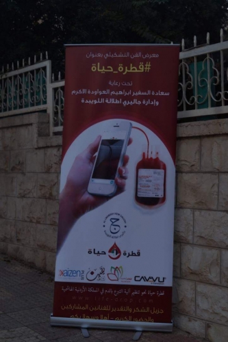 و في بداية المعرض قدم الشاعر لؤي شديفات كلمة ترحيبية بالحضور نيابة عن مؤسسي المبادرة اوضح فيها الاهداف و الرؤى و التطلعات حيث تهدف لتنظيم آلية التبرع بالدم في الاردن وبالتعاون مع بنك الدم لانشاء و جمع أكبر قاعدة بيانات محوسبة للقادرين و الراغبين بالتبرع بهدف انقاذ المئات من الأرواح بإذن الله و توفير وحدات الدم اللازمة في الحالات الطارئة و من زمر الدم النادرة من خلال موقع الكتروني تم انشائه لهذ الغاية ( موقع قطرة حياة /www.life-drop.com ) حيث