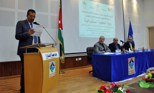 وباشر معالي الدكتور عبدالله عويدات قراءته في استعراض جملة من المفاهيم المحورية التي تضمنتها ورقة جلالة الملك حول الدولة المدنية واحترام سيادة القانون مطالباً بضرورة تخطي المجتمع الأردني جملة من المعوقات التي تحول دون تحقق دولته الحديثة القائمة على المواطنة الحقة والمشاركة الديموقراطية قائلاً إنه ينبغي على المؤسسات التربوية والإعلامية والدينية والجماعات السياسية ومؤسسات المجتمع المدني كافة أن تنهض بدورها المناط بها تحقيقاً لهذه المفاهيم الملكية والرؤى الهامة التي يطرحها جلالته في تلك الورقة مقدماً معاليه الإطار النظري والإجراء العملي الكفيل بوصول الدولة الأردنية الى أن تصبح دولة مؤسسات وقانون فتحدد حقوق المواطن كما تضمنها الدستور ويصار الى التعاطي مع المواطن على أساس مبدأي الحق والواجب مؤكداً معاليه على أن الورقة النقاشية السادسة إذا ما وضعت موضع التنفيذ فإنها كفيلة بتحقيق هذه النقلة النوعية للمجتمع الأردني بأطيافه كافة وفي ختام قراءته أشاد الدكتور عبدالله عويدات بالجهد الذي قدمته جامعة جدارا منوهاً بأهمية مثل عقد هذه الجلسات الحوارية غير المسبوقة في جامعات الشمال التي ابتدرتها جامعة جدارا فاتحه الباب أمام غيرها من المؤسسات لإلقاء المزيد من الضوء على الأوراق النقاشية الملكية الهامة .