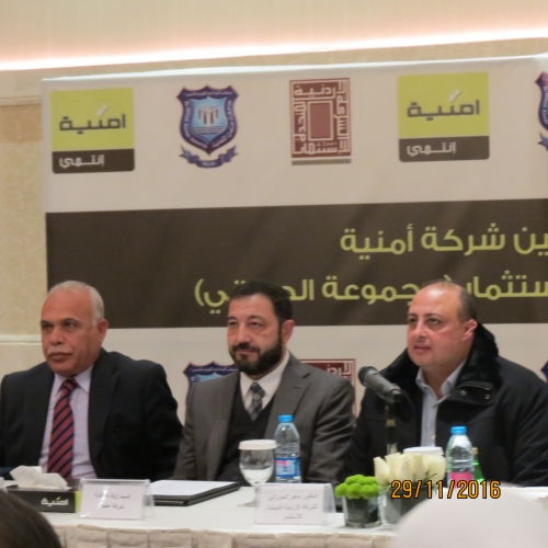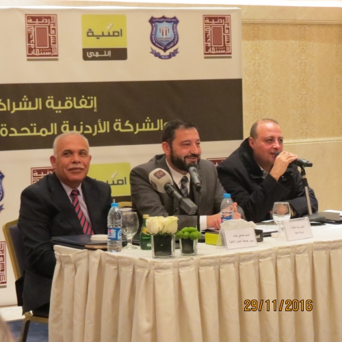 أعلنت شركة أمنية والشركة الأردنية المتحدة للإستثمار " مجموعة الحوراني " عن تجديد إتفاقية الشراكة بينهما ولمدة ثلاث سنوات إضافية .. وذلك في مؤتمر صحفي عقد مساء الثلاثاء 29-11-2016 في فندق "الهوليدي ان".