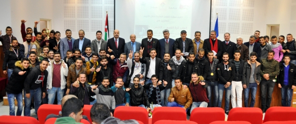 تحت رعاية عطوفة الدكتور شكري المراشدة رئيس هيئة المديرين أقامت عمادة شؤون الطلبة حفل تكريم للطلبة الفائزين في خماسي كرة القدم التي اشترك فيها 16 فريق من تخصصات مختلفة اضافة الى بطولتي تنس الطاولة وهي الثامنة على مستوى الجامعة، وبطولة الشطرنج الثامنة على مستوى الجامعة ايضا.