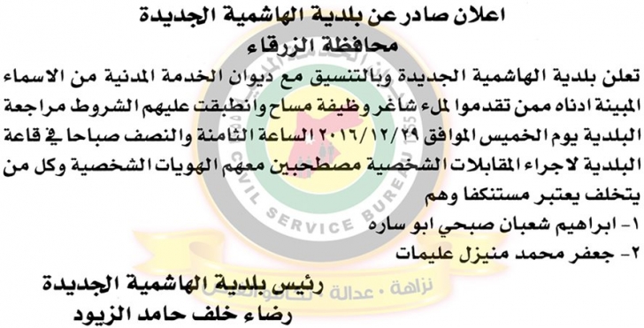 وبحسب ديوان الخدمة، فإن كل من يتخلف عن الحضور يعتبر مستنكفا عن التعيين، داعيا إياهم لاحضار اثبات للشخصية.