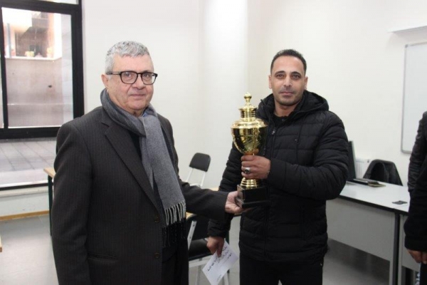 وفي ختام البطولة قام أ.د محمد نزيه حمدي نائب رئيس الجامعة وبحضور عميد شؤون الطلبة الدكتور فؤاد الجوالده، بشكر جميع المشاركين في البطولة وحفّز اللاعبين على بذل المزيد من الجهد والعطاء، وتوّج الفائزين بالمراكز الثلاث الأولى بالبطولة حيث فاز بالمركز الأول الطالب ياسر السرحان من كلية الأعمال وبالمركز الثاني الطالب إمام النسور من كلية القانون وبالمركز الثالث الطالب أيهم السعايدة من كلية الأعمال.