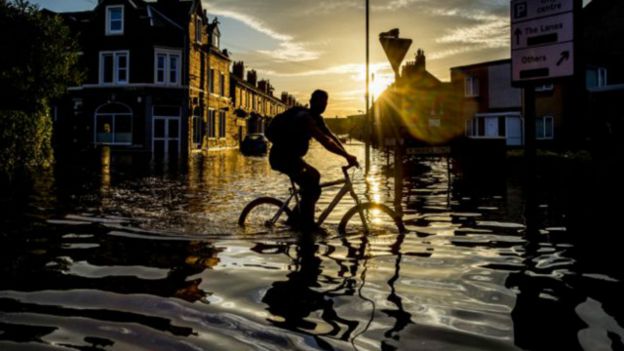 التقط هذه الصورة بروس أدامز في مدينة كارلايل، بمقاطعة كمبريا بانجلترا، بعد أن اجتاحت فيضانات قوية المقاطعة.