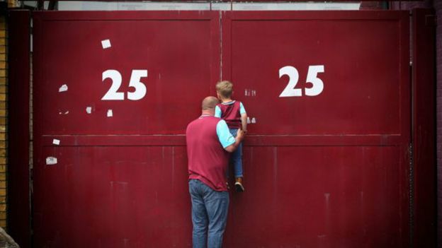 التقط هذه الصورة "مات سبريك"، وتظهر أبا وولده يطلان عبر ثقب في البوابة، لمشاهدة مباراة فريق ويستهام يونايتد أمام مانشستر يونايتد، في ملعب أبتون بارك.