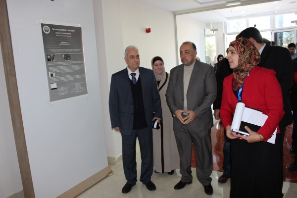 - في خضم انجازات كلية الهندسة في جامعة العلوم التطبيقية الخاصة لنيل الاعتمادات العالمية والمحلية، وتحت رعاية سعادة الدكتور هيثم أبو خديجة نائب رئيس مجلس الامناء، قام الأستاذ الدكتور محفوظ جودة رئيس الجامعة بافتتاح معرض المشاريع الهندسية الأول لطلبة كلية الهندسة يوم الخميس 5/1/2017 وبحضور العديد من الضيوف المميزين من القطاعين الخاص والعام من مدراء ورؤساء أقسام للشركات الهندسية المرموقة وممثلين لأمانة عمان الكبرى ونقابة المهندسين الاردنيين وشركة أدوية الحكمة ومجموعة نقل وشركة أرامكس للشحن ودار الغذاء وشركة فيستا للطاقة المتجددة وشركة زين وشركة دهانات سايبسوأساتذة من جامعة العلوم والتكنولوجيا والجامعة الاردنية والجامعة الهاشميةوحضر من الجامعة نائب الرئيس أ.د سميحة الجراح وعميد كلية الهندسة د. محمد العمري وجميع أعضاء الهيئتين التدريسية والادارية في الكلية.