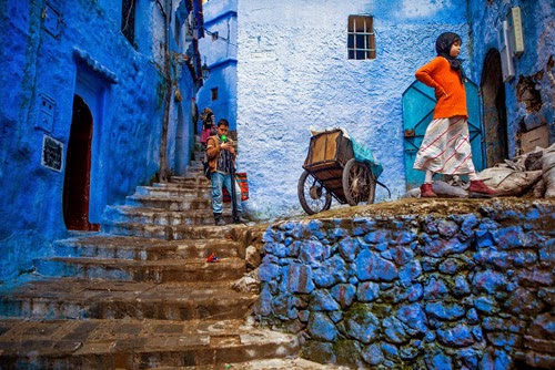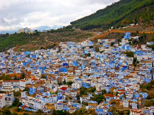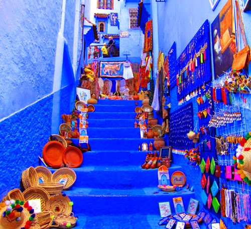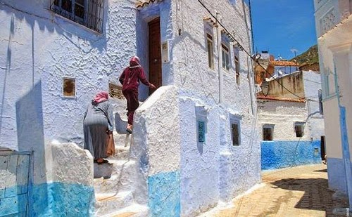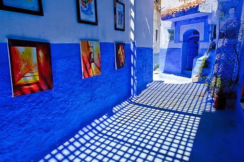 ولكن اللافت في هذه المدينة هي الصور التي نشرتها بعض المواقع على الإنترنت، ومنها موقع "بورد باندا Boredpanda"، لجدران المدينة التي طليت باللون الأزرق حيث يضم قطاع المدينة القديمة العديد من المباني البيضاء والزرقاء التي تعتبر مزيجاً من العمارة الاسبانية والمغربية والتي تجذب السياح، خصوصاً الذين يحبون التجول في الشوارع الضيقة واستكشاف المدينة.