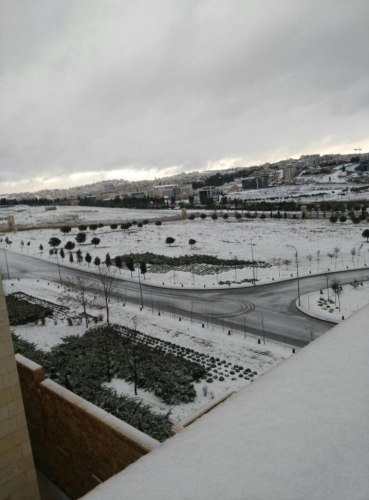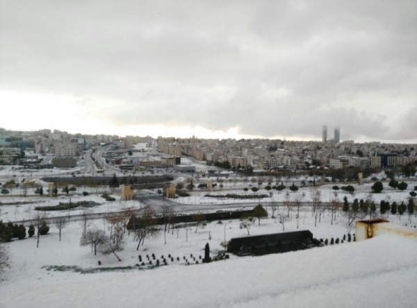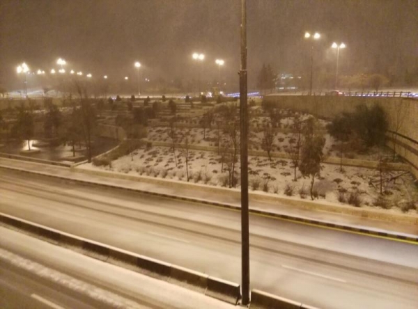 العديد من مناطق العاصمة عمان تساقطا كثيفا للثلوج، ليل الجمعة السبت، ما أدى الى