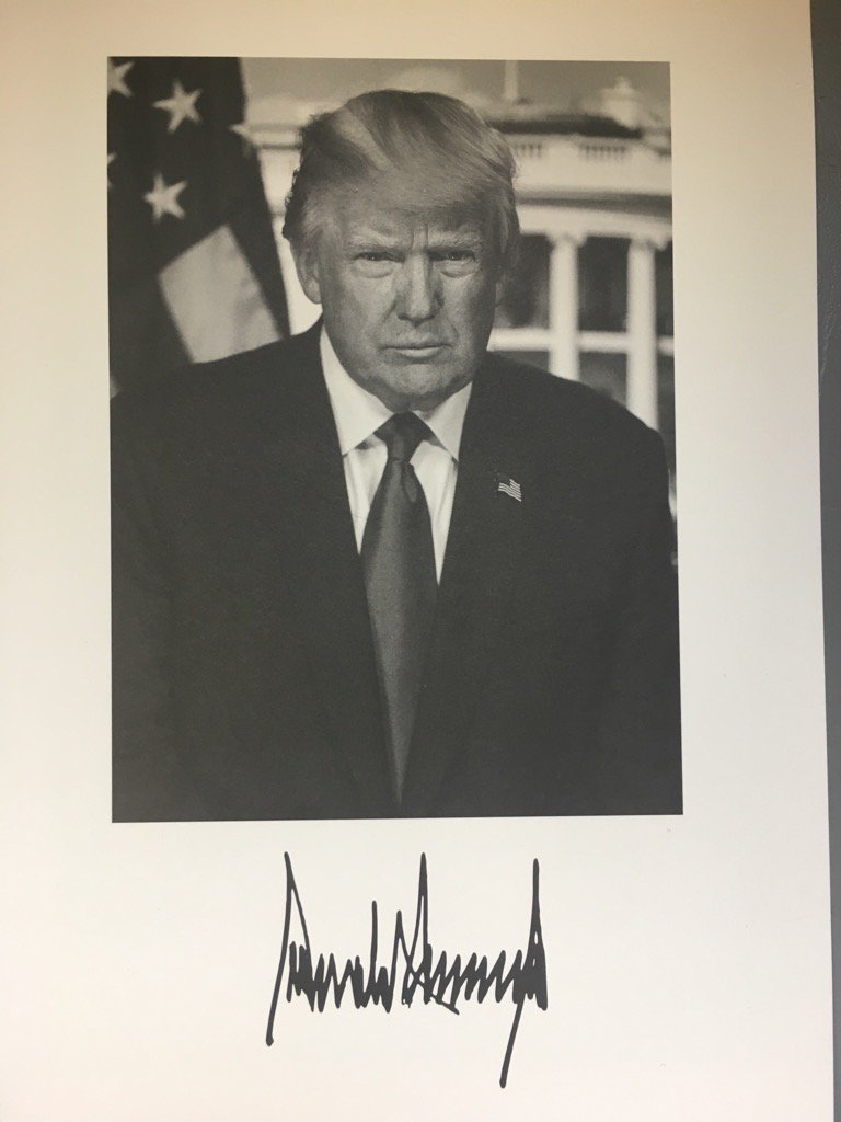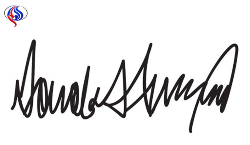 وبدا توقيع الرئيس الأميركي غريبا للغاية ويمتد على مساحة تكاد تشغل كامل عرض الورقة التي يقوم بالتوقيع عليها. والشكل العام لذلك التوقيع هو خطوط متعرجة تمتد على حوالي 15 سنتمترا.