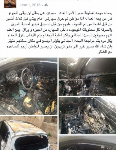 وبحسب الإجراءات القانونية والبحث عن حقي مع من تطاول على أمن المواطن ، توجهت لأقرب مركز أمني وهو (مركز امن المدينة) حيث أتبع قضائيآ وتقدمت بشكوى خطية (والكلام لصاحب القضية) عما حصل معي وبالتفصيل ، وقامت الأجهزة المختصة بالتحقيق والتحري من خلال بعض الجيران والمختبر الجنائي الذي كشف عن الحادثة وجمع العديد من الدلائل والبراهين لإظهار الحقيقة كاملةً ، وتبين بأن أحد سكان الحي كان يضع كاميرا في منطقة الحادث ، ولدى مراجعة تسجيلات الكاميرا ظهر للأمن الشخص الذي تسبب بحرق مركبتي ، وتم التعرف على هوية الجناة .
