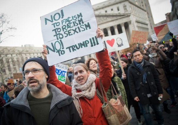 وقال محتج أمريكي، من أصحاب البشرة السوداء: "هنا دولتنا التي هي بلد الحريات، وقرارات ترامب تتعارض مع ذلك".