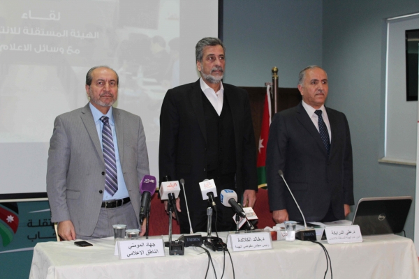 أكد الدكتور خالد الكلالدة رئيس مجلس مفوضي الهيئة المستقلة للانتخاب على دور الاعلام وأهميته في توعية وتثقيف المواطنين بالعملية الانتخابية وتجويدها بكافة مراحلها، وذلك خلال لقاء الهيئة بوسائل الاعلام والذي يأتي ضمن استعدادات الهيئة للانتخابات البلدية واللامركزية والمتوقع اجراؤها في صيف هذا العام .