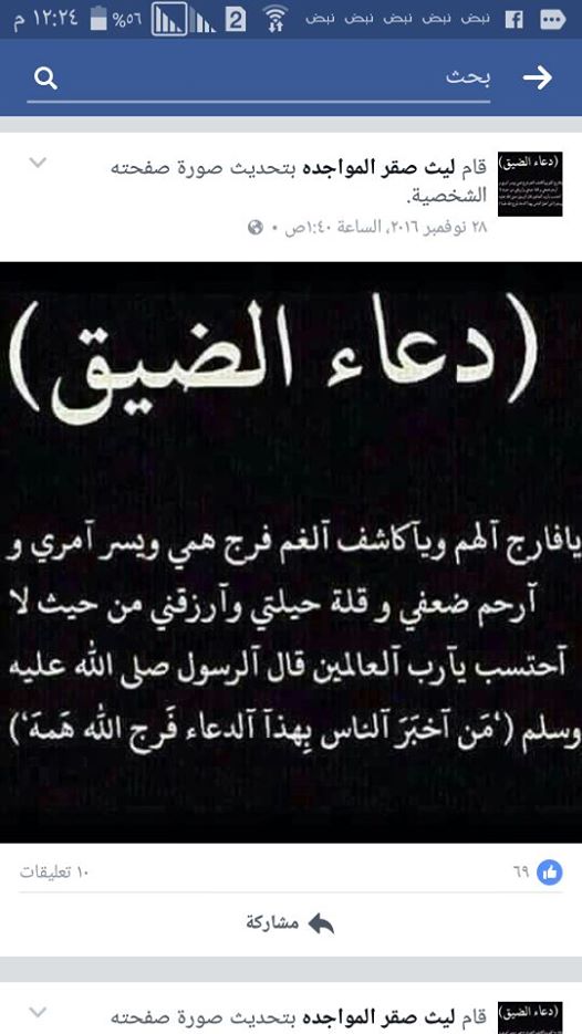 ونشر الشاب "ليث"على صفحته الشخصية على صفحته على موقع التواصل الاجتماعي "فيس بوك" صورة ،كانت آخر ما نشر،جاء فيها "دعاء الضيق ،يا فارج الهم و يا كاشف الغم ،فرّج همي ويسر أمري وإرحم ضعفي،وقلة حيلتي وارزقني من حيث لا أحتسب يا رب العالمين ..قال الرسول صلى الله عليه و سلم من أخبر الناس بهذا الدعاء فرج همه"
