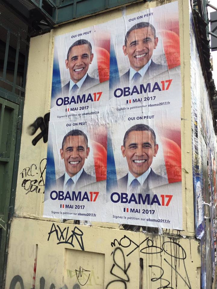 وحل عنوان "أوباما 2017"، عنوان حملة افتراضية انطلقت في فرنسا لجمع تواقيع لدعم ترشيح أوباما رئيسا لفرنسا، بعدما أنهى مهامه الرئاسية في الولايات المتحدة الأميركية.