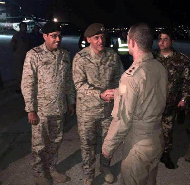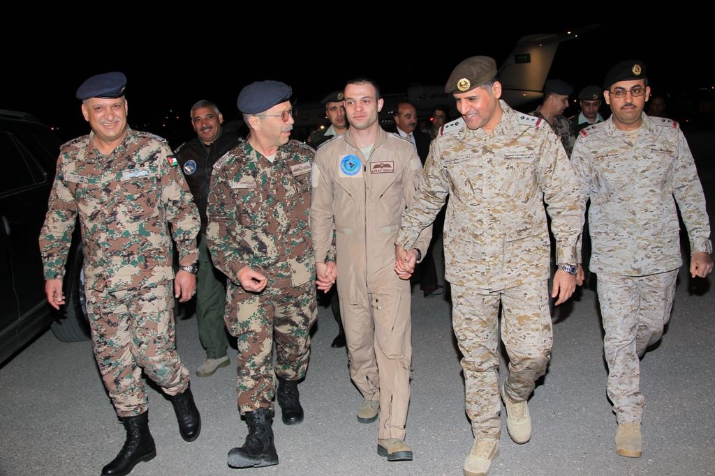من جهته .. نقل العقيد الركن / خالد الربيعان تحيات سمو السفير للطيار الأردني وذويه مهنئاً بسلامة وصوله لأرض الوطن سالماً معافى .
