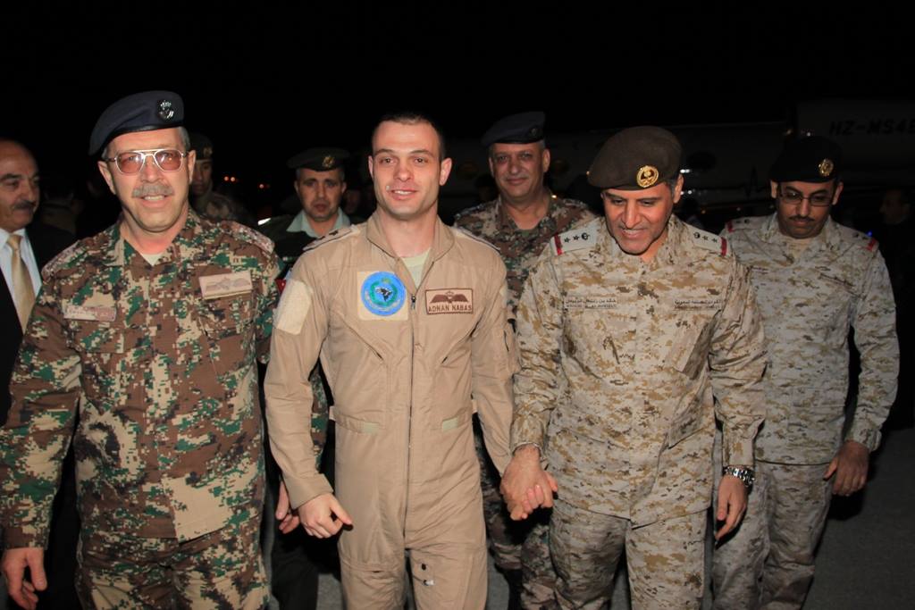 و وصل الطيار الأردني عدنان نباص الى مطار ماركا العسكري في العاصمة عمّان بكامل صحته وعافيته ، على متن طائرة الاخلاء الطبي السعوديه ، وكان في استقباله لدى وصوله للمطار ، عدداً من منسوبي السفارة بعمان على رأسهم الملحق العسكري العقيد الركن / خالد بن ربيعان الربيعان ومساعد الملحق المقدم الركن / عبدالله الشكره ، الى جانب عدد من قيادات سلاح الجو الاردني منهم العميد / أدهم الشيشاني والعميد / جابر العبادي ووالد الطيار واخوانه وعدداً من أقاربه.