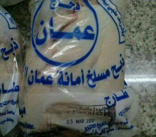 تداول مواطنون على مواقع التواصل الإجتماعي،صورة لأحد منتجات مسلخ أمانة عمان الكبرى،من لحوم الدواجن،تظهر فيه،عملية تزوير وتلاعب بتواريخ الإنتاج .