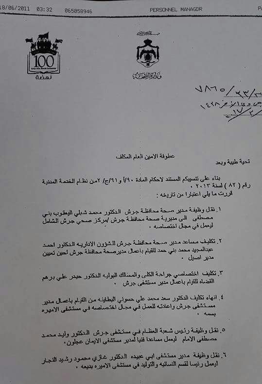 قرر وزير الصحة الدكتور محمود الشياب إجراء تنقلات في الوزراة شملت الأسماء التالية :