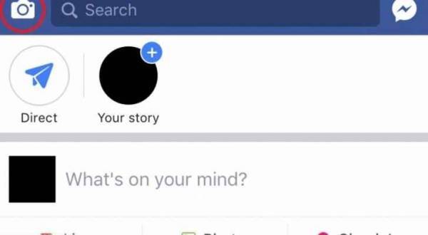 قم أولا بتحديث تطبيق فيسبوك على آيفون أو أندرويد، سيظهر بعد ذلك رمز كاميرا في الجهة العلوية اليسرى من التطبيق (على آيفون) إلى جانب المربع الخاص بالبحث عن الأصدقاء أو الصفحات.