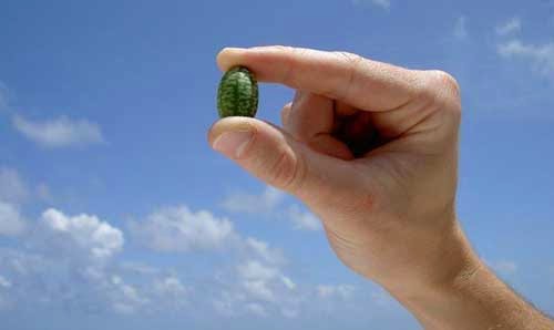 هذه البطيخة الصغيرة التي تبدو كأنها أحد نتائج الهندسة الجينبة، ما هي في الحقيقة الا ثمرة طبيعية 100% أتت من أحدالأشجار البرية القديمة في جنوب أمريكا ويطلق على هذه الثمرة اسم Pepquino melon.